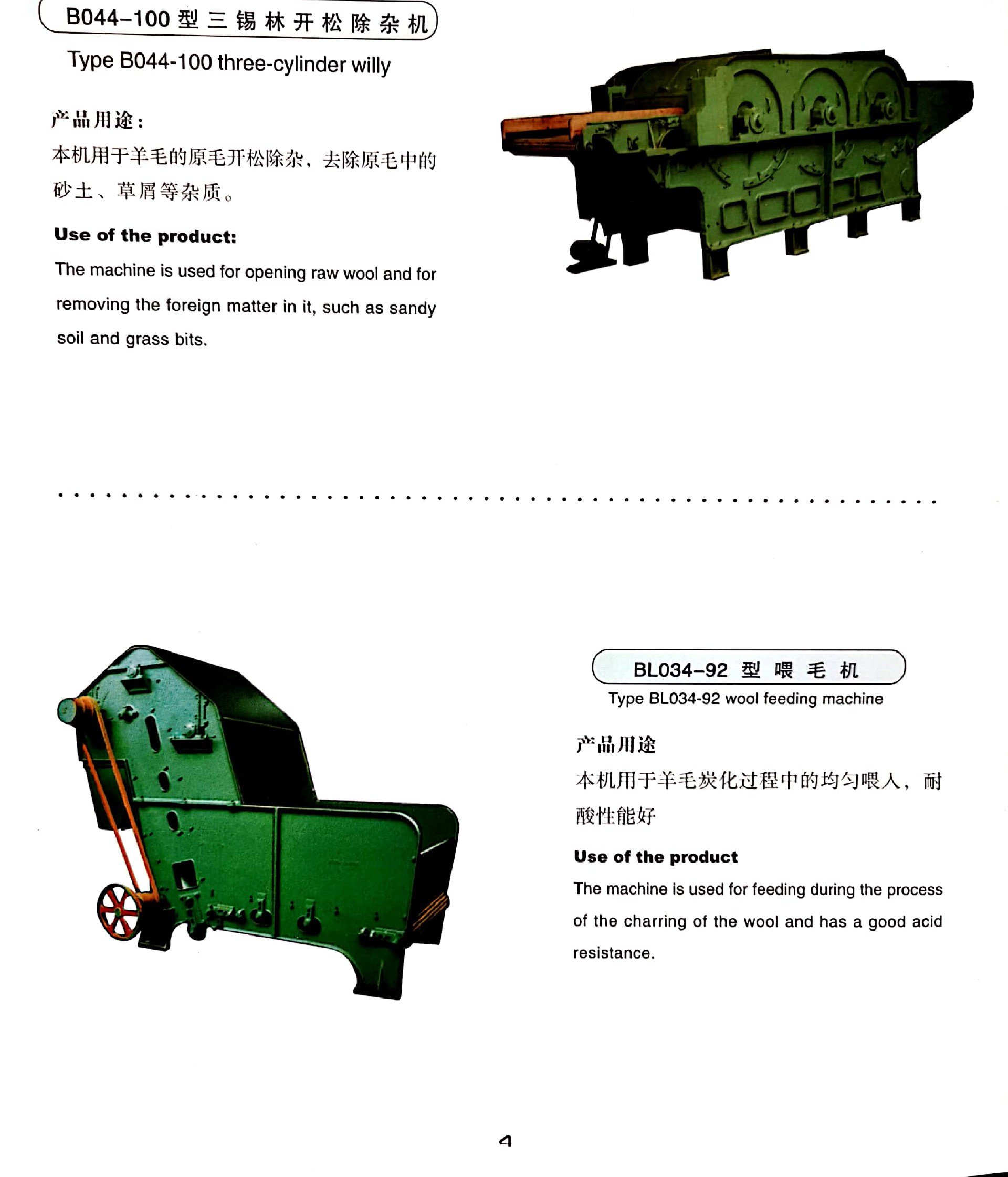 在應(yīng)用領(lǐng)域方面,B044 - 100 型三錫林開松除雜機(jī)廣泛適用于各類毛紡企業(yè)。無論是大規(guī)模的工業(yè)化毛紡廠,需要處理大量原毛以滿足連續(xù)化生產(chǎn)的需求,還是中小型的毛紡企業(yè),追求高效且精準(zhǔn)的原毛預(yù)處理效果,該設(shè)備都能完美適配。它是毛紡生產(chǎn)流程中不可或缺的重要一環(huán),為整個(gè)毛紡產(chǎn)業(yè)鏈從原料端開始把控質(zhì)量,助力企業(yè)生產(chǎn)出高品質(zhì)、高附加值的羊毛制品,在提升企業(yè)經(jīng)濟(jì)效益和市場(chǎng)競(jìng)爭(zhēng)力方面發(fā)揮著不可替代的作用。