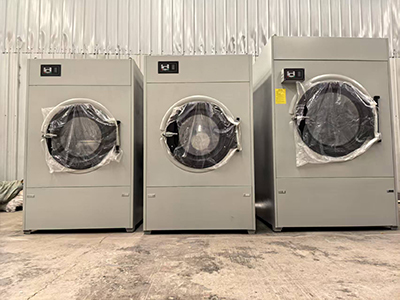 烘干機:按容量大小分為:15 kg 、30kg、50kg、100kg、120kg、150kg烘干機。該機為箱柜式結(jié)構(gòu),通過頂置散熱器,由底部抽風(fēng)機,將熱量均勻散發(fā)至箱體內(nèi)部,滾筒作正反轉(zhuǎn)運轉(zhuǎn),使織物均勻受熱,濕氣排出機外,達(dá)到烘干效果。該機由內(nèi)置不銹鋼滾筒、散熱器、焊接外殼、電機、抽風(fēng)機、電器部件、傳動部件等組成。結(jié)構(gòu)合理、效率高、噪音低、安全可靠。烘干后的織布,手感膨松柔軟,是布草、織物的烘干設(shè)備。